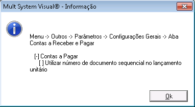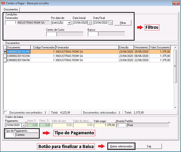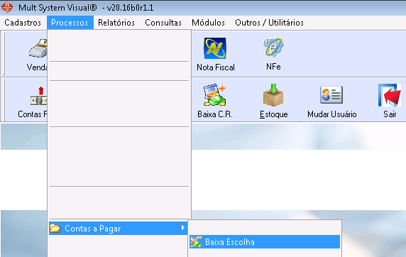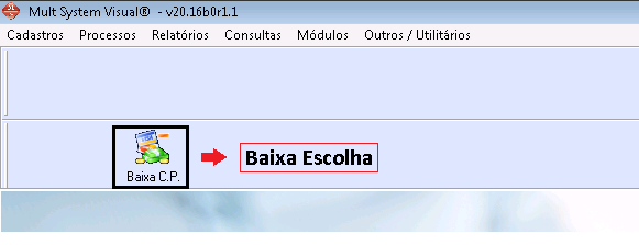 É possível também realizar a Baixa de um Documento do Contas a Pagar através do Baixa Escolha, conforme Imagens 14 e 15.